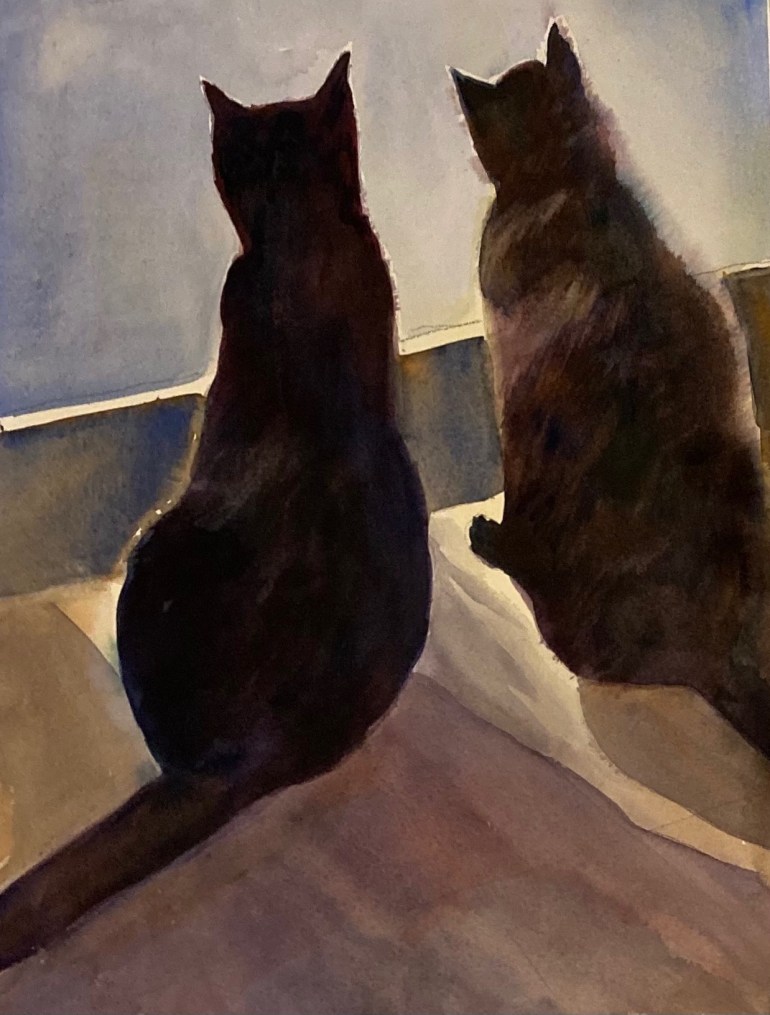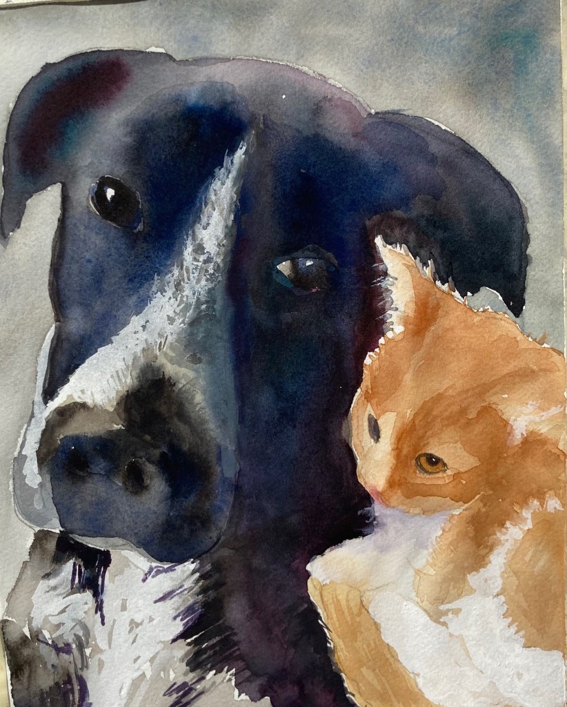 I love animals. I’ve been working on painting animals in a different way: adding a lot of emotion, color and collage. Some of these are mixed media and some are watercolor.